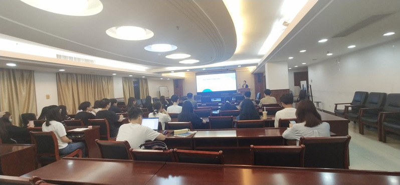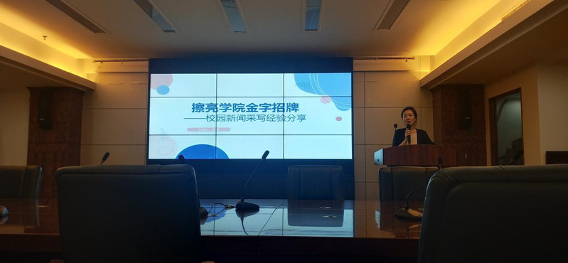 第一场讲座于18:00开始,李梅就自身从事新媒体运营的工作经验向同学们分享了新闻采访及采访稿写作技巧。她首先对新闻的定义做了阐释,目前常见的新闻可分成硬新闻和软新闻,前者适用于全局采写,相当于以广角镜头对场景进行拍摄;后者则适用于局部采写,类似于聚焦,更具人情温度,由于两种新闻各有特色,所以因根据具体情况选择适宜的新闻方式。接着她谈到新闻写作的一些具体操作,并给出了优秀新闻稿的标准。从标题而言,要准确、合理、鲜明、生动,根据不同的场景灵活选取标题,而且她强调标题是一篇新闻的灵魂,一定要吸引读者眼球并引发读者的阅读欲望;从导语而言,要开门见山,直接切入事件内容的核心,切忌绵密拖沓;从语言而言,新闻应以真实性第一,追求准确、简洁、客观,采写中不宜出现过于主观的情感表达。最后,针对“擦亮学院的金字招牌”这一选题,各个学院以自身核心特色为题撰写了新闻,李老师选取了其中一些优秀的新闻采写案例供同学们赏析借鉴。