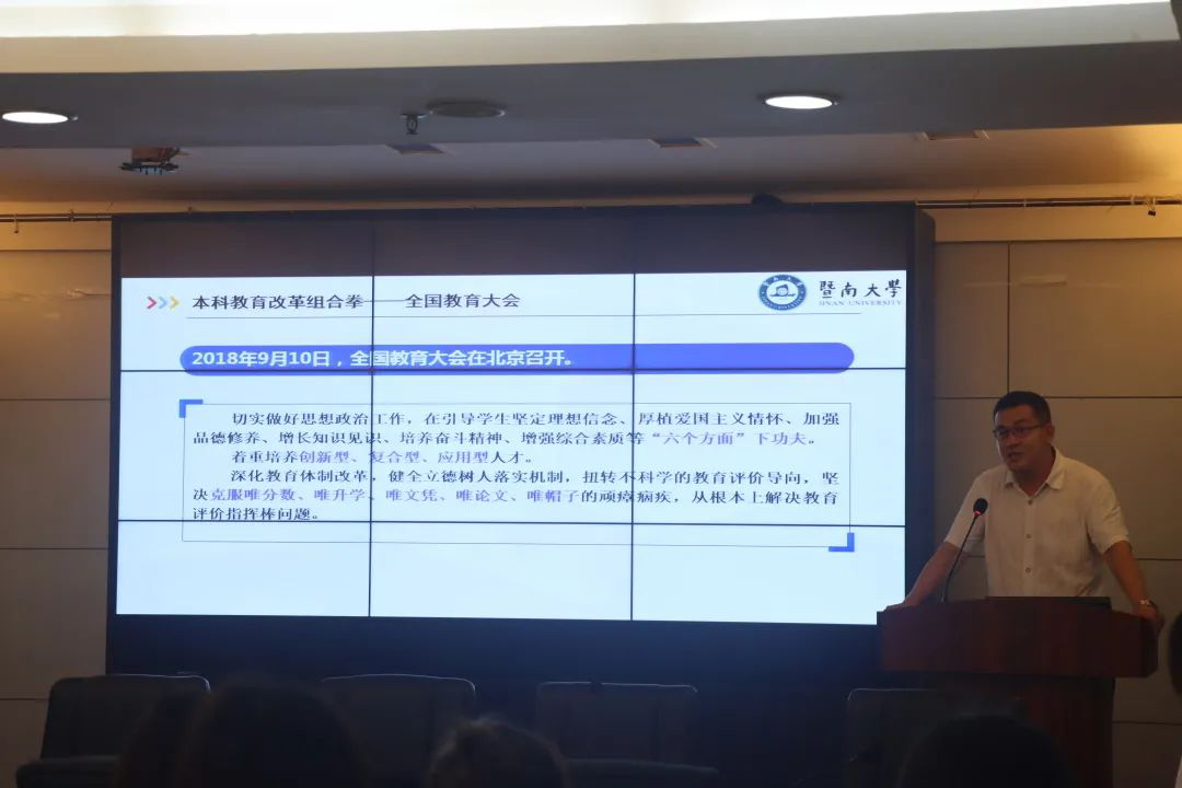 其次,他向学生传达了新时代全国高等学校本科教育工作会议的精神:坚持以本为本,推进四个回归,即加快建设高水平本科教育,把人才培养的质量和效果作为检验一切工作的根本标准。接着,陈剑谈到健康中国背景下的“新医科”,他对此进行了释义、溯源,并将“新医科”之“新”具体概括为理念新、背景新、专业新。他还认为,医学教育新的时代特征决定了应以培养学生胜任力为导向。
