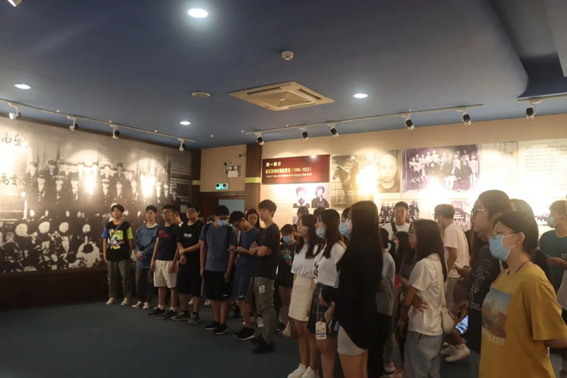 分享结束后全体学生前往校史馆,在校史讲解员的带领下,学生有序进入馆内参观学习。